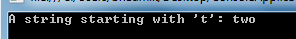 Console.WriteLine("A string starting with 't': {0}", startsWithO);